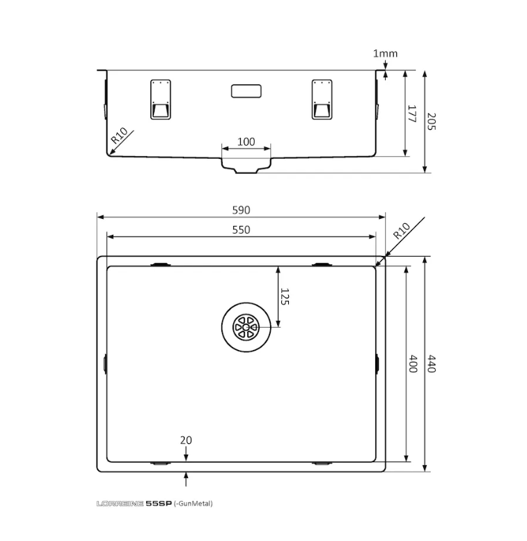 RVS spoelbak kleur afwerking in PVD coating met Lorreine SuperPlug.