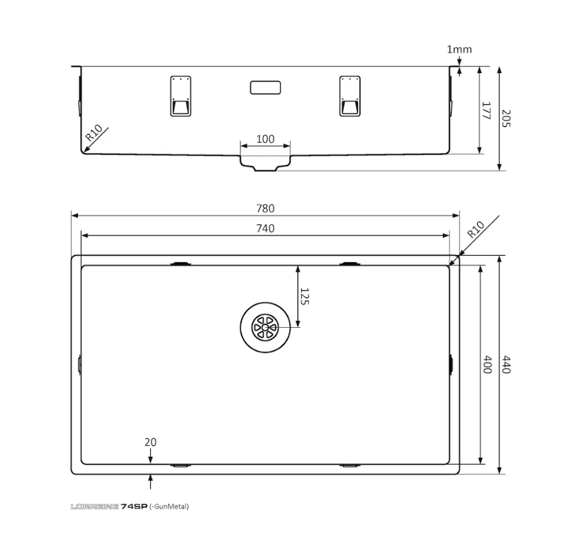 RVS spoelbak kleur afwerking in PVD coating met Lorreine SuperPlug.