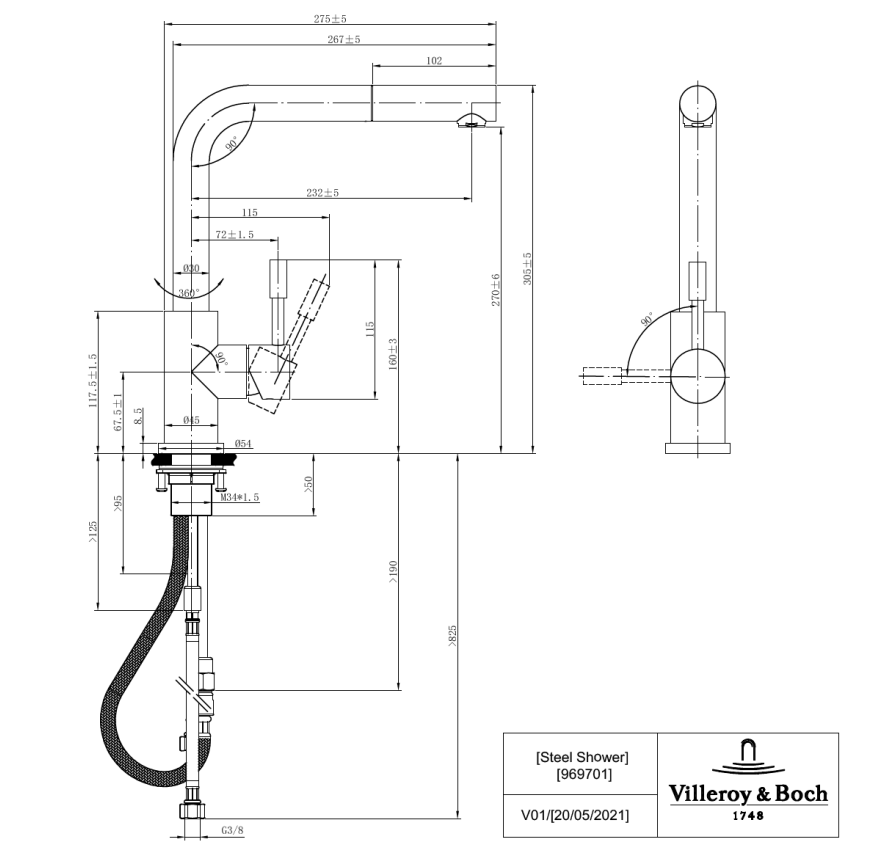 • flexibele RVS aansluitslangen 50 cm