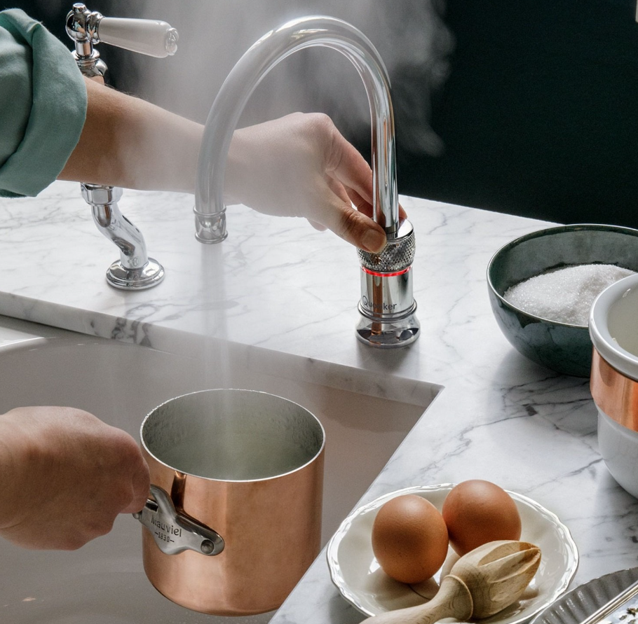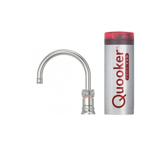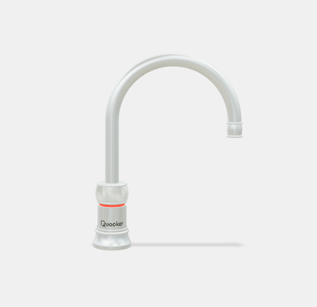 De Quooker Classic Nordic Round is een kokend water kraan die te gebruiken is naast uw bestaande mengkraan. Met de nieuwe klassieke ronde vormgeving past deze Nordic Round naast iedere klassiek vormgegeven mengkraan. Deze kraan levert uitsluitend kokend water.