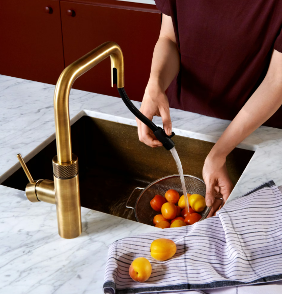 In de unieke uitloop van deze Quooker Flex zit een flexibel uittrekbare tuit. Deze tuit werkt als een handdouche. Op deze manier kunt u de straal overal naar toe richten. Uitermate geschikt als u een wat grotere wasbak heeft in uw keuken. Net als de Fusion is de Quooker PRO3 Flex Square Messing Patina ook een 3 in 1 kraan. Koud, warm én kokend water uit één kraan dus!