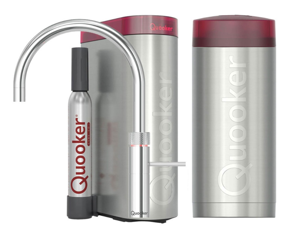Uw Quooker is helemaal compleet met het nieuwe CUBE reservoir. Daarmee geeft de kraan niet alleen koud, warm en kokend water, maar ook gekoeld en bruisend water uit dezelfde uitloop. U plaatst de CUBE in het keukenkastje naast het Quooker reservoir. Door de meegeleverde CO2-cilinder kunt u 60 liter bruisend water tappen. Dit maakt het gebruik van plastic flessen volgoed overbodig en u bent ook nog eens goedkoper uit dan in de supermarkt.