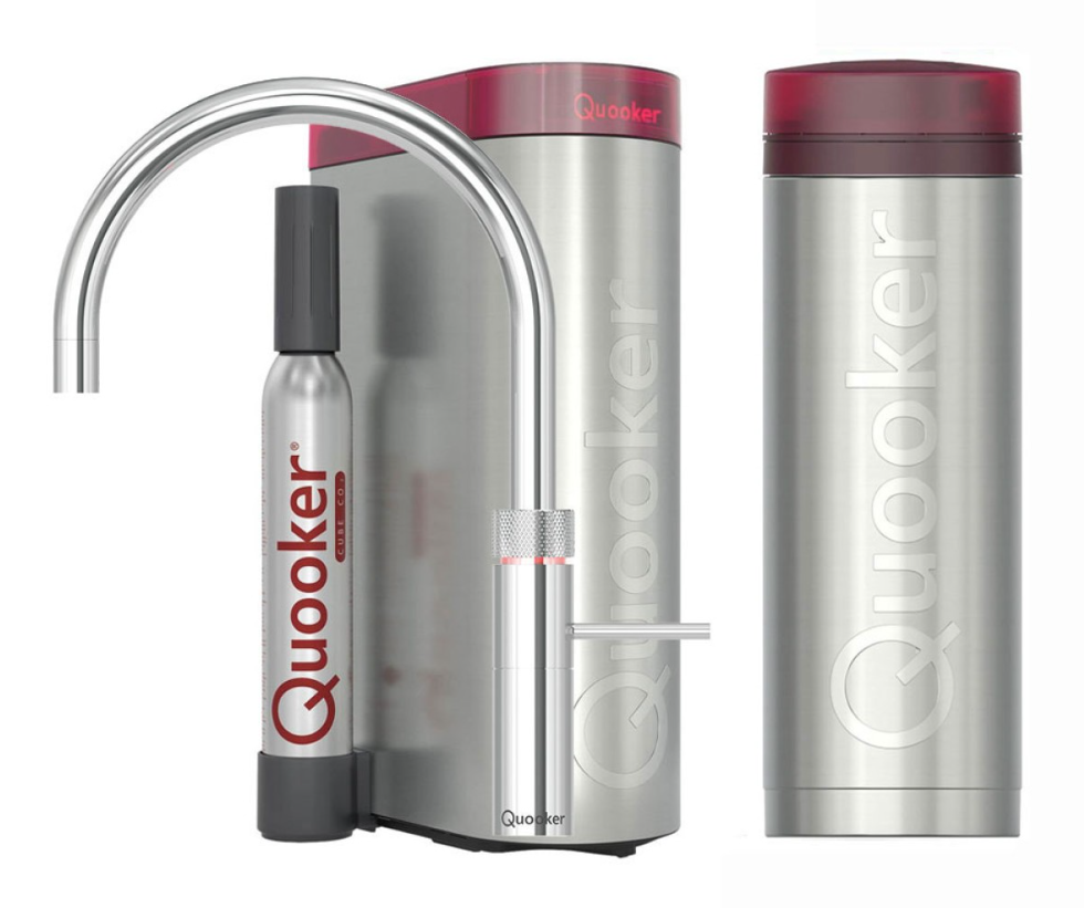 Uw Quooker is helemaal compleet met het nieuwe CUBE reservoir. Daarmee geeft de kraan niet alleen koud, warm en kokend water, maar ook gekoeld en bruisend water uit dezelfde uitloop. U plaatst de CUBE in het keukenkastje naast het Quooker reservoir. Door de meegeleverde CO2-cilinder kunt u 60 liter bruisend water tappen. Dit maakt het gebruik van plastic flessen volgoed overbodig en u bent ook nog eens goedkoper uit dan in de supermarkt.
