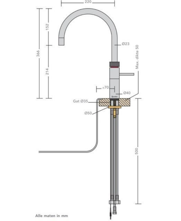 Standaard meegeleverd bij de Quooker Combi+ Fusion-Round Gunmetal
