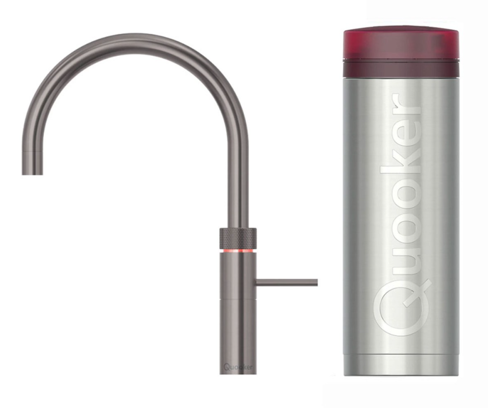 Met de Fusion-Round Gunmetal haalt u een prachtige moderne kraan in huis. De Gunmetal kraan geeft naast gewoon warm en koud water ook kokend water. Een echte 3 in 1 kraan dus! De kraan heeft een strakke vierkante uitloop en is 360 graden draaibaar. Een grote pan water koken voor pasta, even snel een kopje thee zetten of de snijplank ontsmetten? Doordat u direct kokend water beschikbaar heeft uit de Quooker PRO3 Fusion-Round Gunmetal verliest u geen tijd, water of energie!