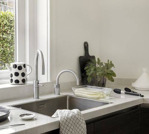 De Nordic Round Twintaps is een set kranen bestaande uit een kokend water kraan en een mengkraan in hetzelfde design met een ronde uitloop. De kokend water kraan is in hoogte verstelbaar en is 360 graden draaibaar.