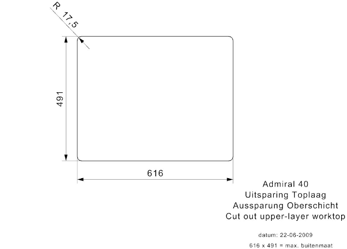 Totale afmeting: 615 x 490 x 180 mm