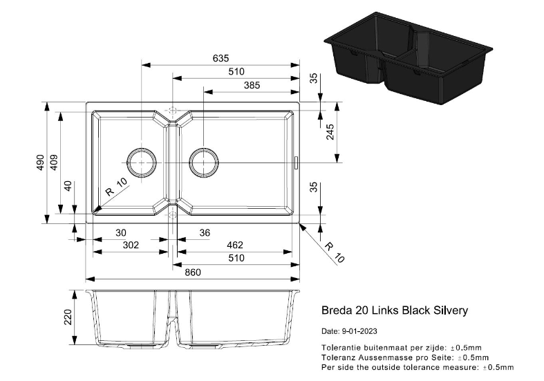 Totale afmeting: 860 x 490 x 200 mm