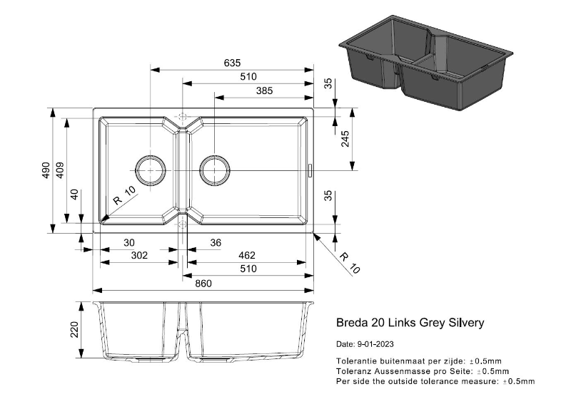 | Uitvoering | Anderhalve Keukenspoelbak |