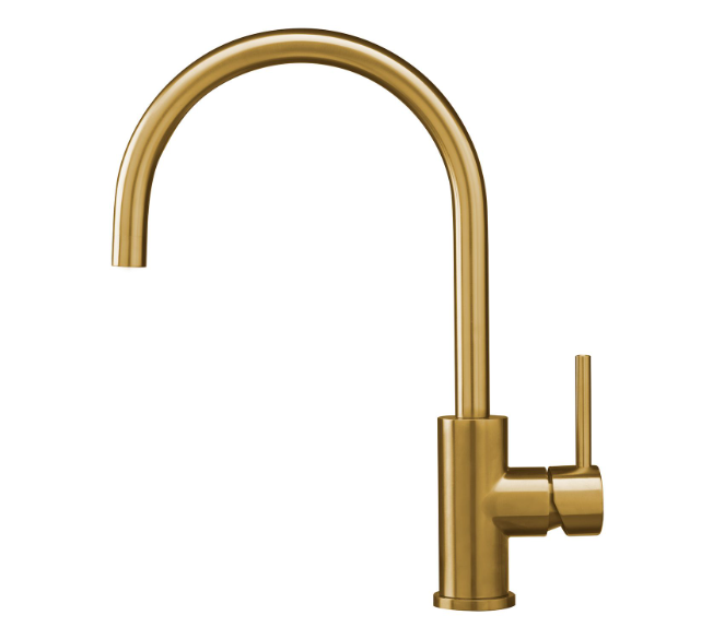 • Een eenhendel keukenkraan van PVD goud