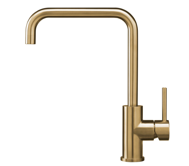 • Een eenhendel keukenkraan van PVD goud