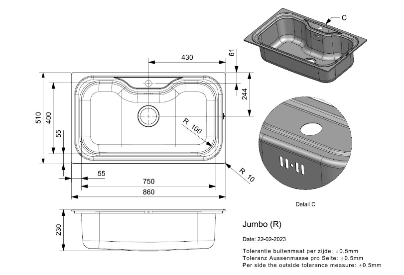 | Uitvoering | Enkele Keukenspoelbak |