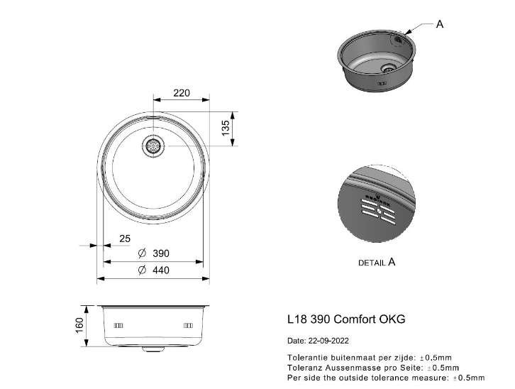 Keukenspoelbak rond
