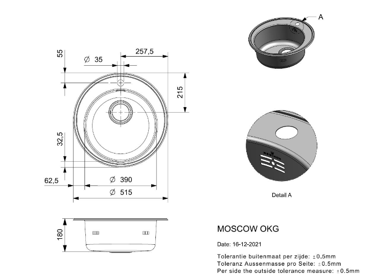 Keukenspoelbak rond
