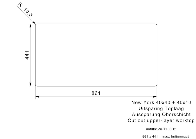 Totale afmeting: 860 x 440 x 200 mm