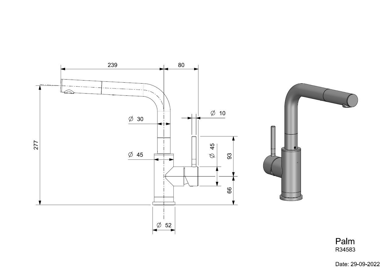 • De Palm kraan van Reginox is een robuuste kraan van geborsteld rvs