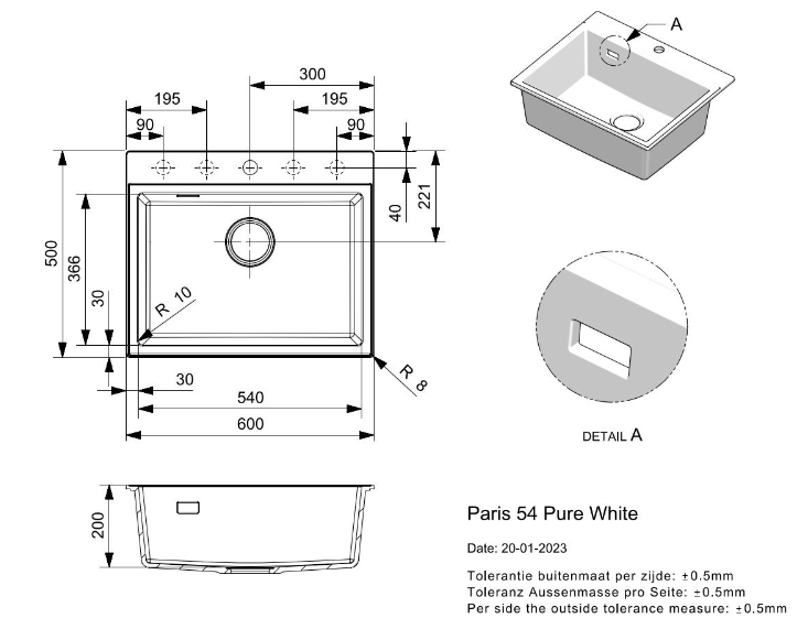 • buitenafmeting 600 x 500 mm
