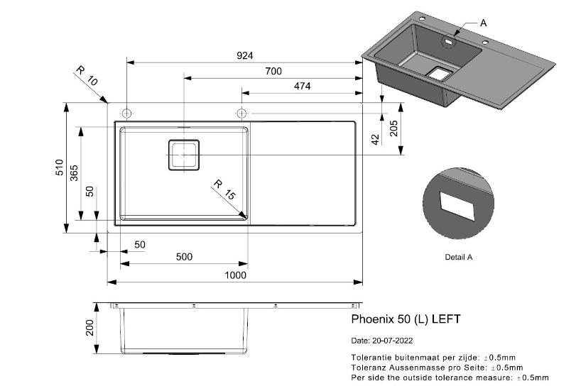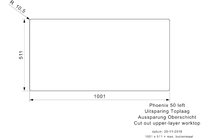 Totale afmeting: 1000 x 510 x 200 mm
