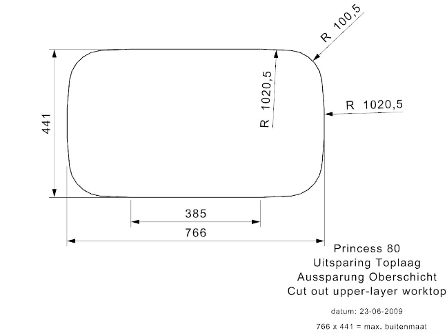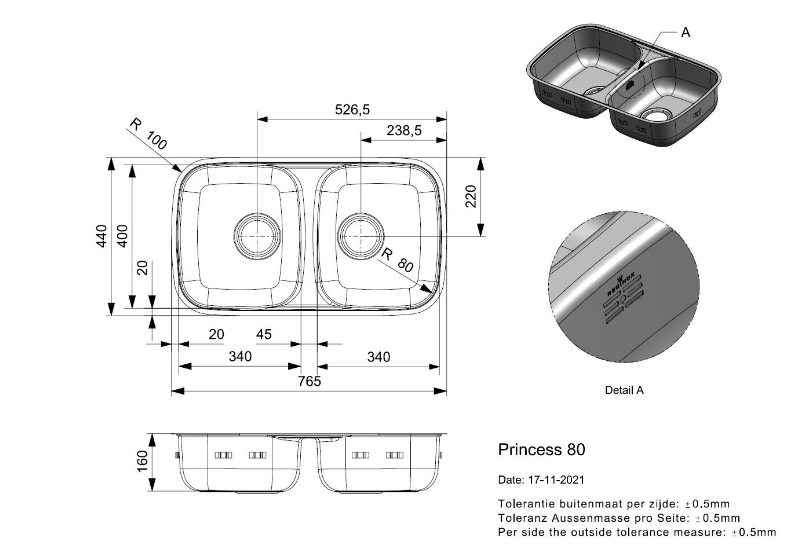 Totale afmeting: 765 x 440 x 160 mm