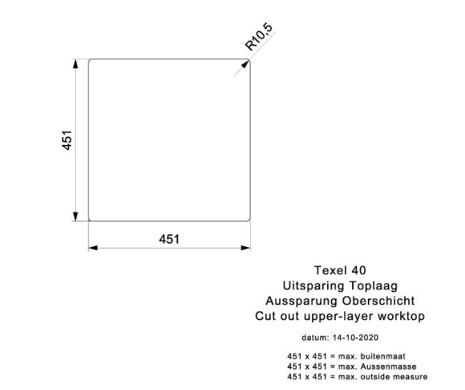 Totale afmeting: 450 x 450 x 216 mm