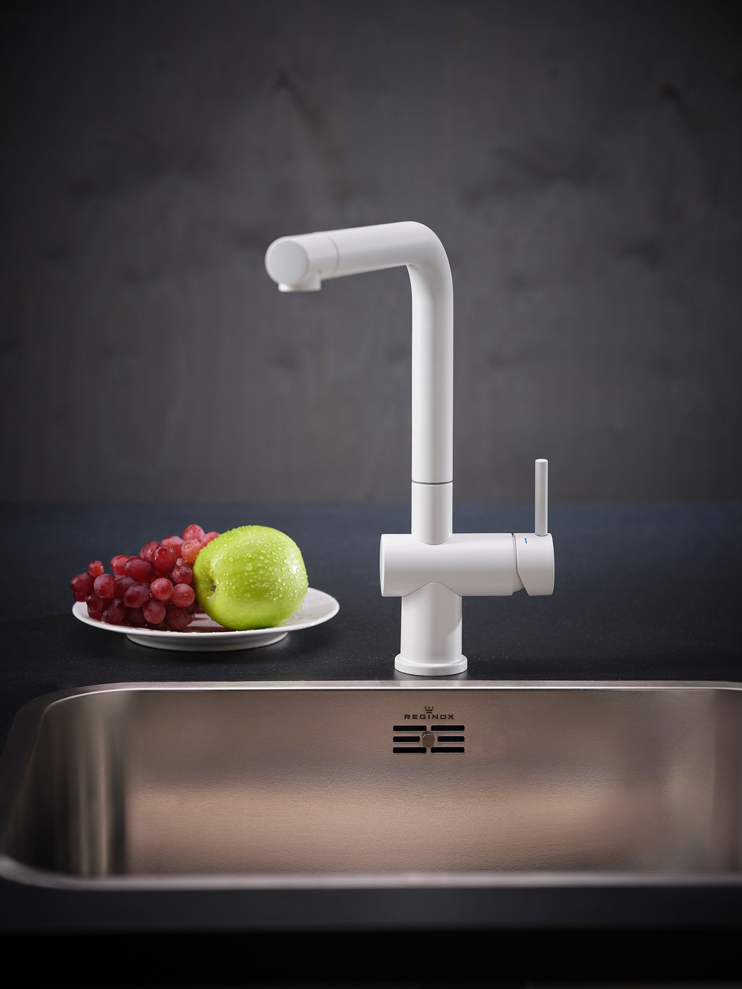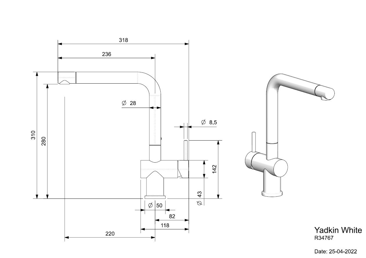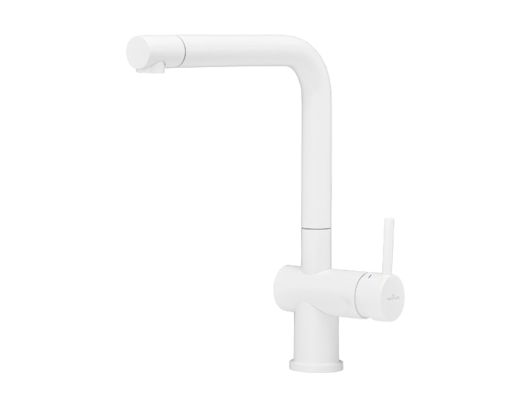 • De Yadkin White valt op door zijn witte kleur. Deze eenhendel keukenkraan heeft een vierkante hals.