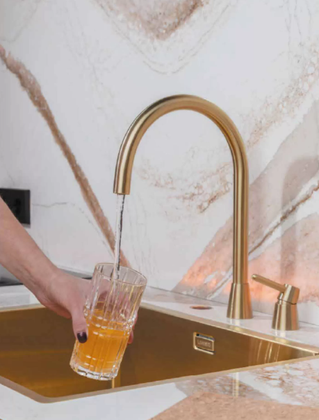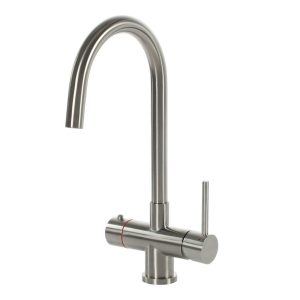Deze 3-in-1 kraan beschikt over een uniek Click Click Go systeem waarbij met twee drukken op de knop kokend water uit de kraan komt. De rechter hendel geeft koud en warm water. De kraan is veilig voor kinderen en beschikt over een ecostart functie waardoor er minder water en energie wordt verspild.