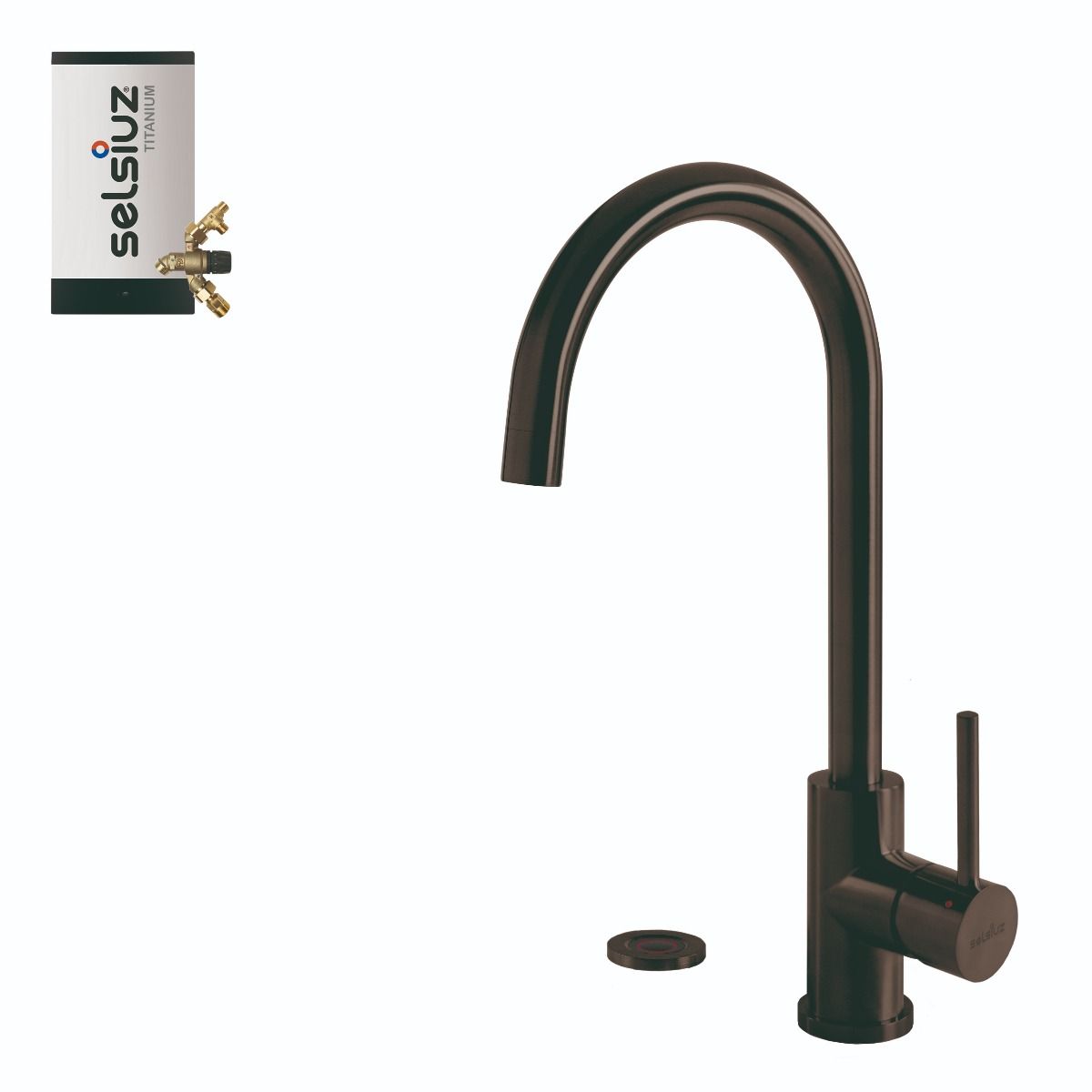 Selsiuz Push & Turn Haaks Zwart 350340 Met Combi Extra Boiler 3 in 1 Kokend Water Keukenkraan Mat Zwart