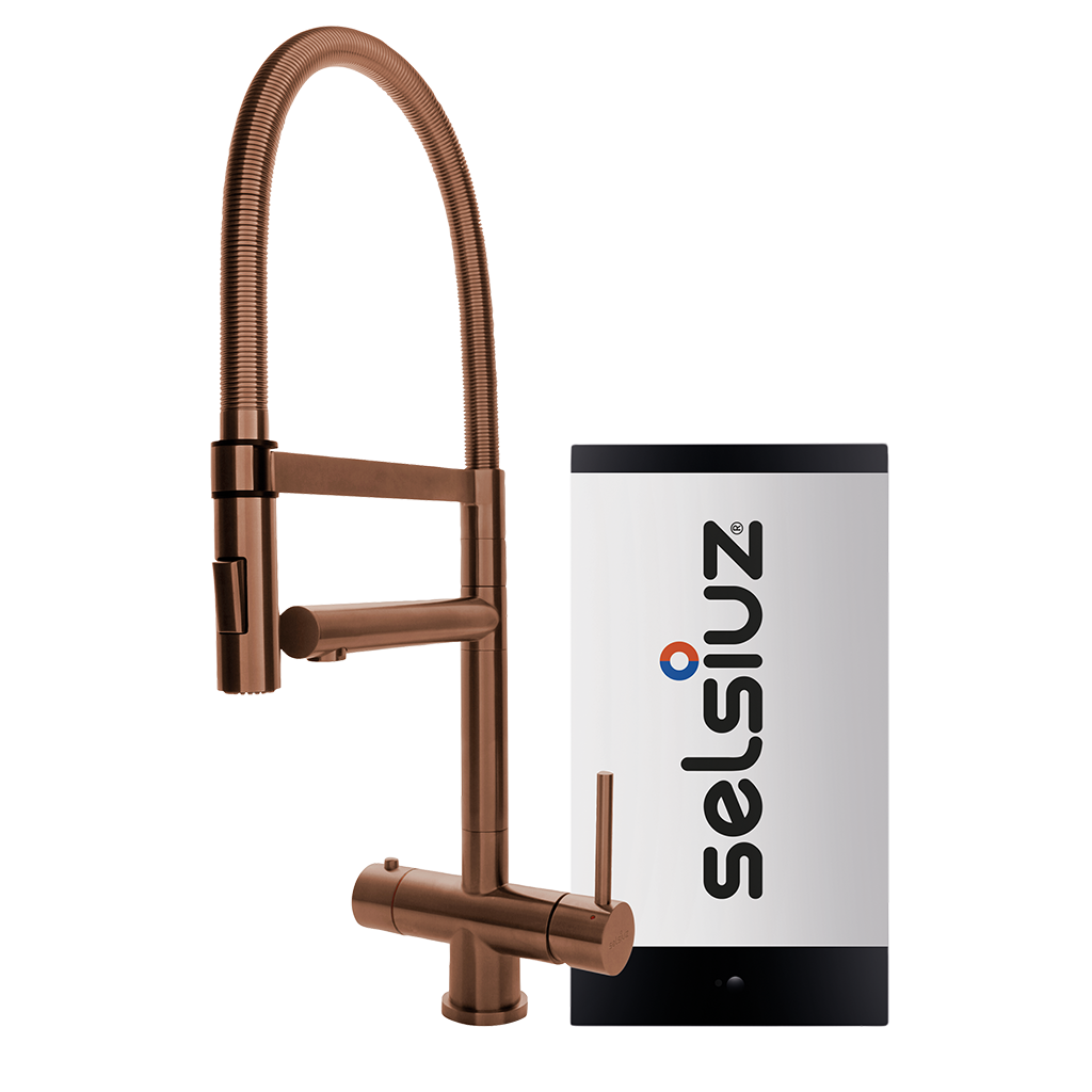 Selsiuz Push & Turn Rond Copper 350259 Met Single Boiler Van Titanium 3 in 1 Kokend Water Keukenkraan Copper