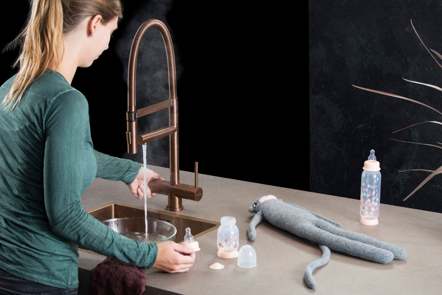 De Selsiuz XL Copper is een 100% geborsteld rvs keukenmengkraan die met één hendel zowel koud als warm water bedient. De kraan is verkrijgbaar in standaard rvs (inox) en een pvd coating in de kleuren gun metal, copper en gold. Dankzij het design en de kleur kunt u alle uitvoeringen uitstekend combineren met andere artikelen zoals spoelbakken, verlichting en zeepdispensers.