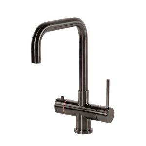 Deze 3-in-1 kraan heeft een veilige druk draai bediening voor kokend water. De rechter hendel geeft koud en warm water. De kraan beschikt over een ecostart functie waardoor er minder water en energie wordt verspild.