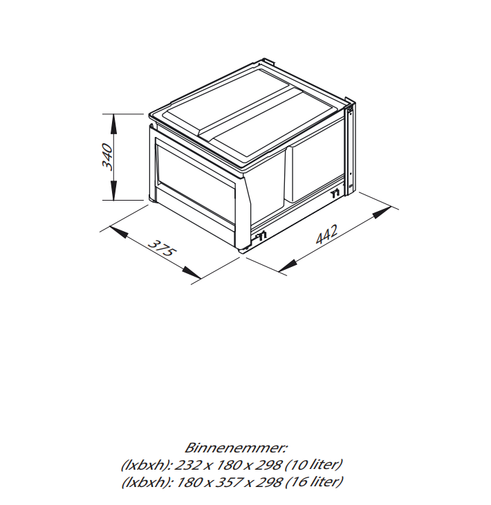 Inhoud 36 liter (2 x 10 + 16), inclusief groen batterijbakje