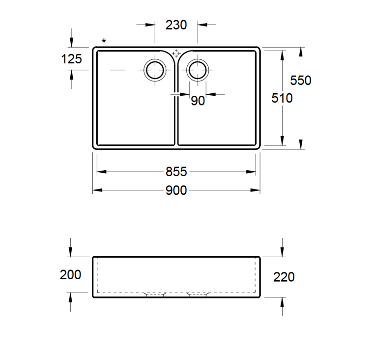 Houd er rekening mee dat de breedte van de onderkast moet minimaal 90 cm zijn.
