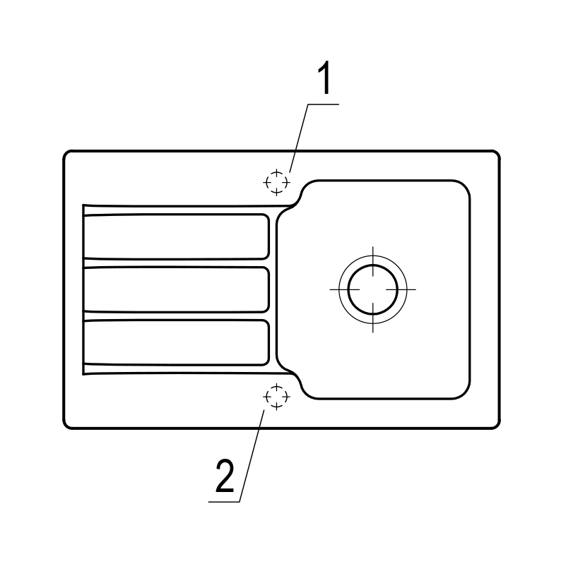 Let op met bestellen van deze spoelbak gelieve in de opmerkingen aangeven hoeveel kraangaten u wenst en welke positie aan de hand van de tekening