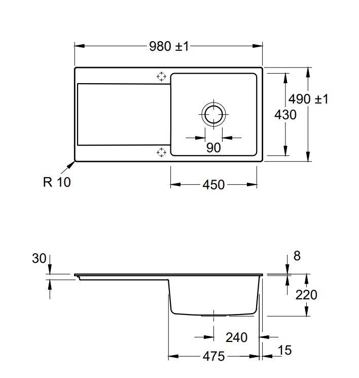 Spoelbak kan links of rechts worden geïnstalleerd