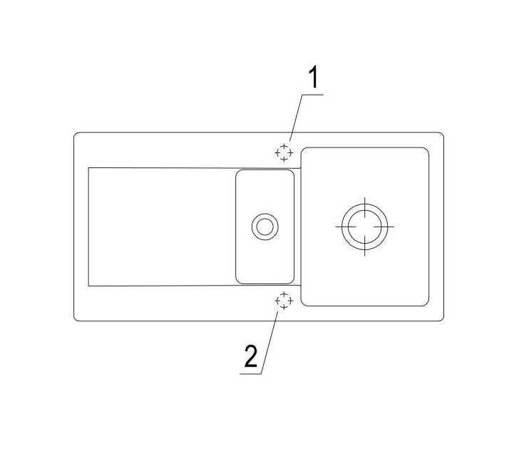 Let op met bestellen van deze spoelbak gelieve in de opmerkingen aangeven hoeveel kraangaten u wenst en welke positie aan de hand van de tekening