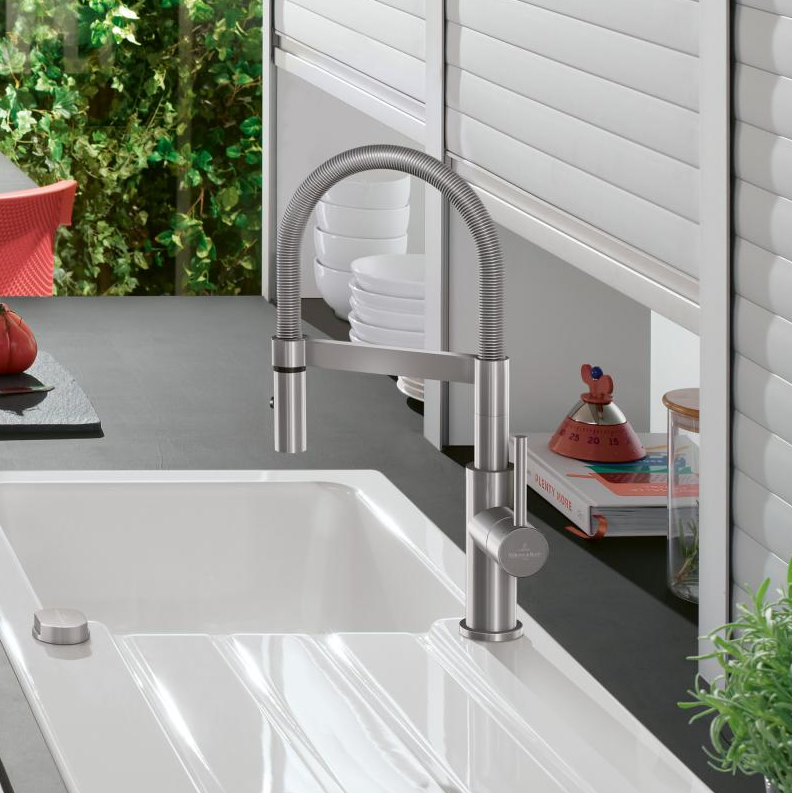 2 straalsoorten: laminaire straal (gelijkmatige, kristalheldere waterstraal), douchestraal (krachtige straal verrijkt met lucht voor het wassen van groente en fruit)