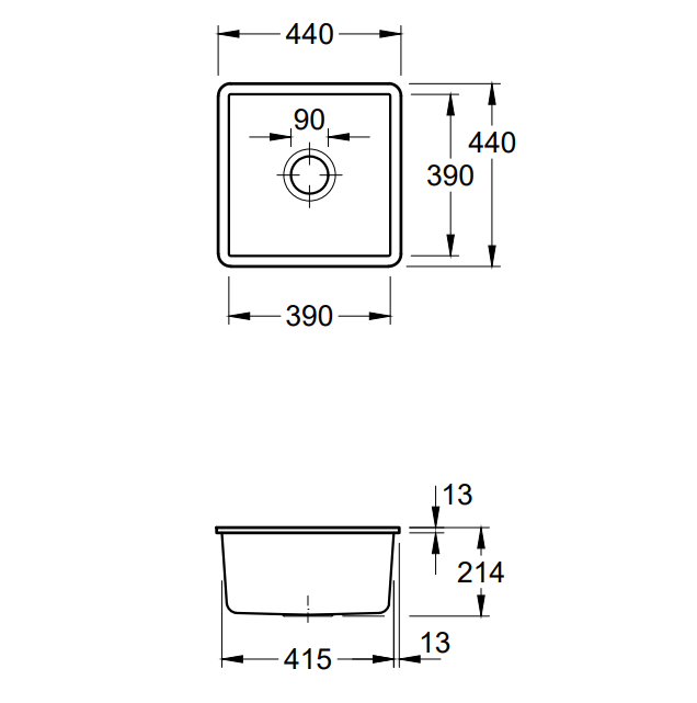 Spoelbak, afvoer- en overloopset, korfventiel, sjabloon