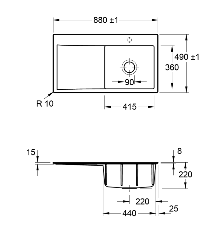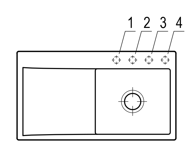 Let op met bestellen van deze spoelbak gelieve in de opmerkingen aangeven hoeveel kraangaten u wenst en welke positie aan de hand van de tekening