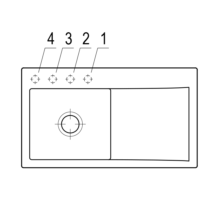 Let op met bestellen van deze spoelbak gelieve in de opmerkingen aangeven hoeveel kraangaten u wenst en welke positie aan de hand van de tekening