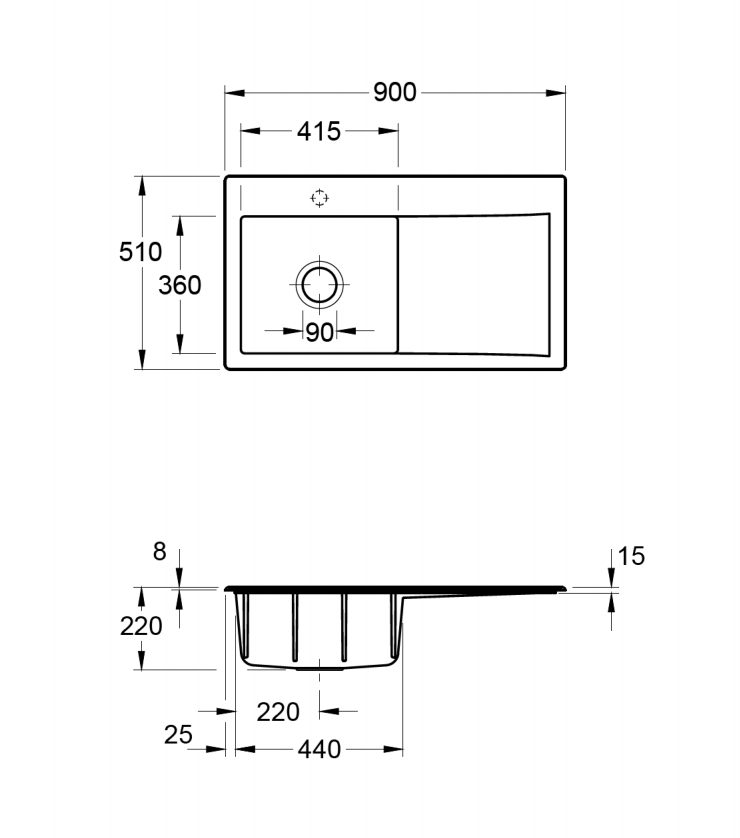 Leveringsomvang: Gootsteen, afvoergarnituur, mandzeef