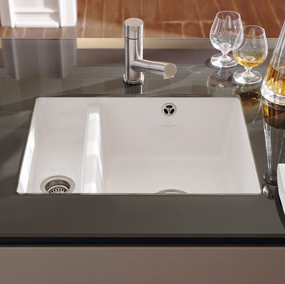 Inclusief spoelbak, afvoer- en overloopset, mandzeef, sjabloon