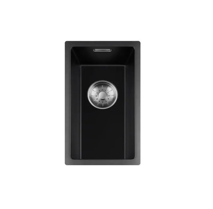Lorreine 17BQ-FU Luxe Enkele Keukenspoelbak Graniet Zwart Met Korfplug Zwart 17 x 40 Vlakbouw Of Onderbouw